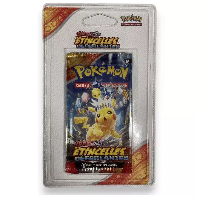 • 1x Booster plastique Pokémon Etincelles Déferlantes EV08 qui contient 10 cartes du JCC Pokémon (Illustration aléatoire).