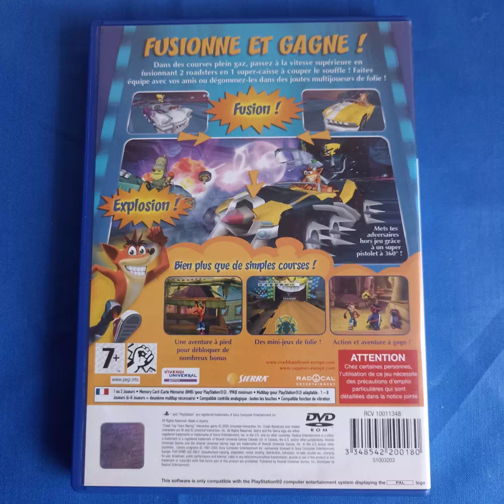 Crash Tag Team Racing sur PS2 est un jeu de courses dans lequel vous retrouvez les personnages et l’univers de Crash Bandicoot. A bord de kartings armés jusqu’aux essieux, frayez-vous un chemin sur la première marche du podium. Seul ou en équipe, participez également à des mini-jeux comme des combats en arène, ou faites des courses simples pour battre le meilleur temps.