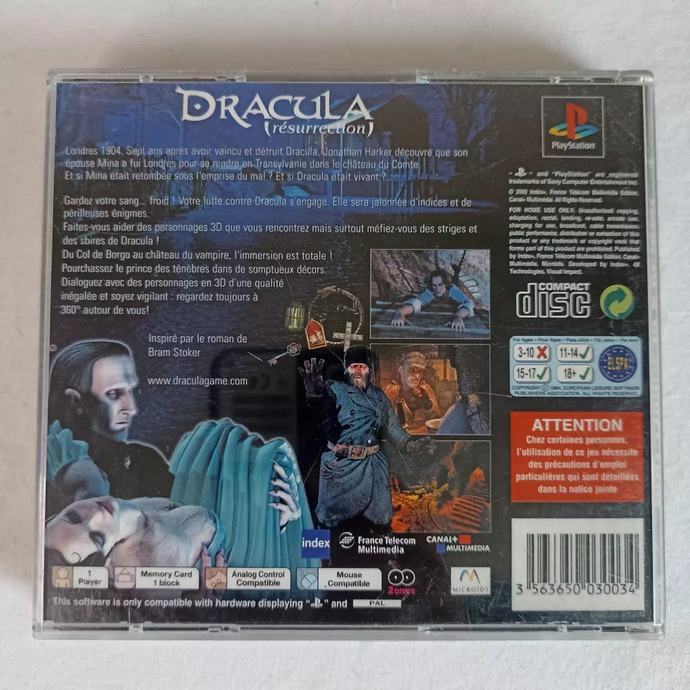 Dracula : Résurrection est un jeu d’aventure sorti sur Playstation. Sept ans après avoir détruit le comte, Jonathan Harker découvre que sa fiancée a fui dans le château du seigneur des vampires. Dracula serait-il réveillé ? A vous de le découvrir en vous y rendant et en enquêtant.