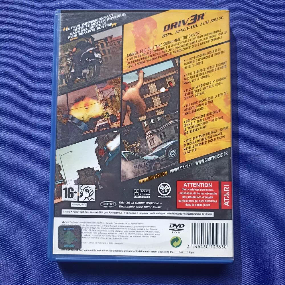 DRIV3R sur PS2 est un jeu de conduite musclée dans lequel vous dirigez Tanner, un flic infiltré dans la mafia. Ici vous devez démanteler un réseau de trafic de voitures qui sévit à travers tout le pays. Mettez fin à la carrière des criminels en remplissant vingt-six missions réparties dans trois grandes villes. Pilotez plus de soixante-dix véhicules au maniement et aux caractéristiques différentes.