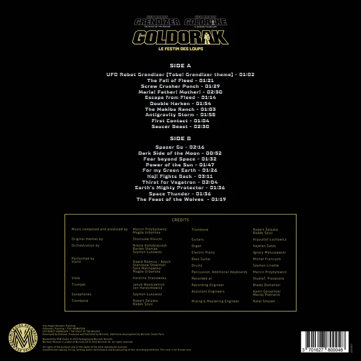 Bande originale officielle du jeu vidéo Goldorak, le festin des loups, composée par Marcin Przybylowicz et Magda Urbanska.Préparez-vous à vivre une aventure inoubliable avec Goldorak, le célèbre robot géant. Ce jeu d’action/aventure adapté de la série animée culte, vous plongera au cœur de l’univers de son créateur, Go Nagai, et vous donnera la chance de piloter le plus puissant des robots et de combattre les forces du mal.Goldorak est un manga culte qui a vu le jour en 1975, créé par Go Nagai.