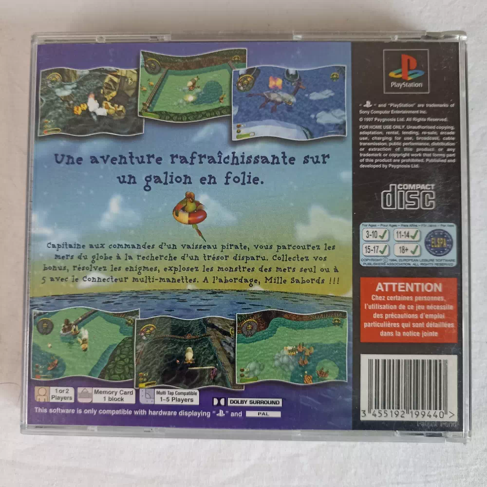 Overboard ! est un jeu d’action sur Playstation. Vous contrôlez un bateau de pirates et devez naviguer à travers une série de ports pour tenter de capturer des colonies, de récupérer des cartes au trésor à l’intérieur de bouteilles, ainsi que de trouver la porte d’entrée pour le niveau suivant.