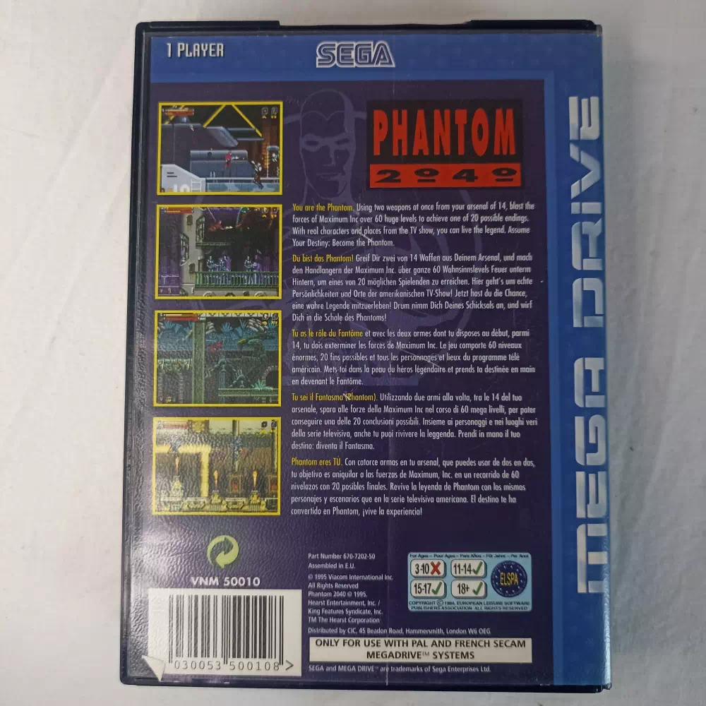Phantom 2040 est l’adaptation sur Megadrive de la série d’animation éponyme, inspirée du comics The Phantom créé par Lee Falk. Lorsque Kit Walker Jr. apprend qu’il est le 24ème descendant d’une lignée de justiciers appelés Fantômes, il décide de poursuivre les efforts de ses ancêtres en combattant le crime qui a envahi Metropia. Le héros n’a pas de pouvoir extraordinaire mais est habile, robuste et fin tireur. Il se sert également d’une corde pour se déplacer et fouetter les ennemis.