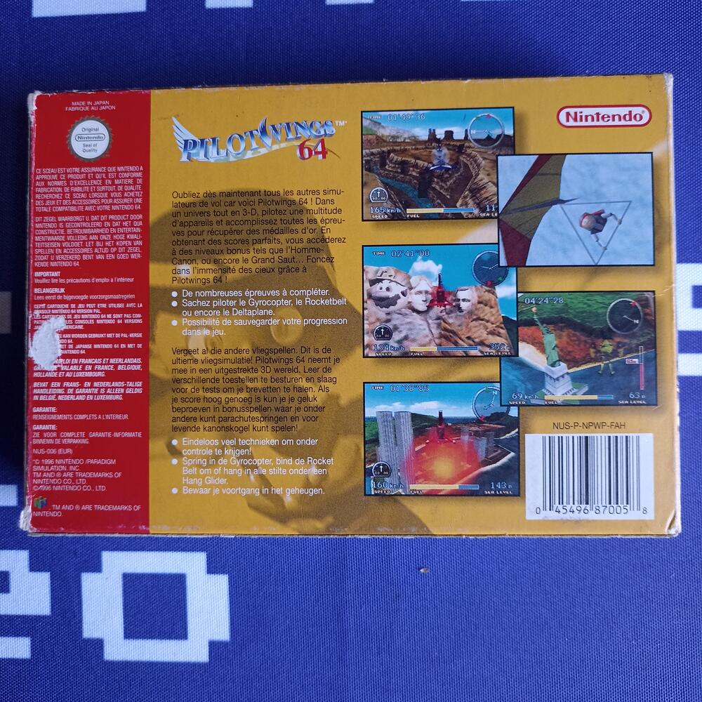 Pilotwings 64 est un jeu de simulateur de vol sur Nintendo 64. Comme dans son prédécesseur, le joueur doit remplir une série de missions en utilisant différents véhicules aériens (jetpack, hélicoptère, deltaplane, parachute…). Les points gagnés dans chaque mission sont attribués en fonction du temps, des dommages, du carburant, de la précision, de l’atterrissage et quelques autres critères.