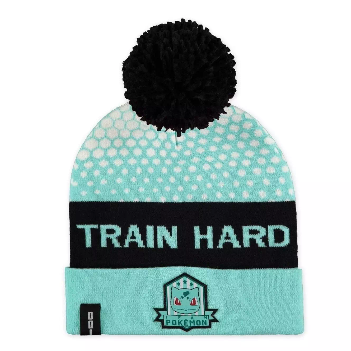 La couleur turquoise est assortie à ton Pokémon préféré, Bulbizarre, tout comme les éléments graphiques tricotés, tissés et brodés sur le bonnet et les gants.