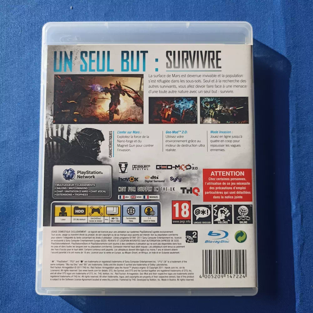 Red Faction Armageddon sur Playstation 3 est un jeu d’action à la troisième personne qui nous plonge dans les entrailles de Mars. On y affronte une horde de créatures venues de nulle part sur fond de guerre civile. Comme toujours, le joueur dispose d’un arsenal capable d’influencer l’environnement.