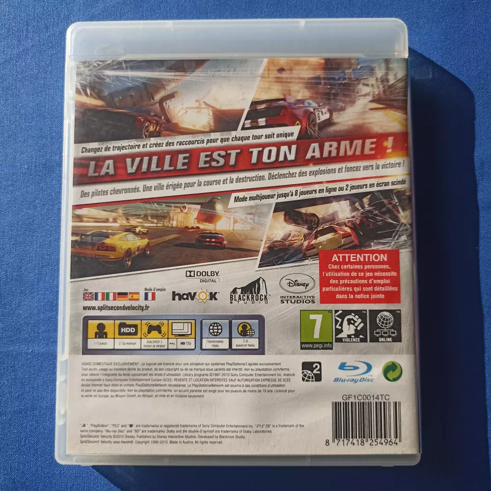 Split/Second Velocity est un jeu de courses orienté arcade à pratiquer sur PC. Le soft vous plonge au coeur d’une émission de télé-réalité où tous les coups sont permis. Au-delà des traditionnels coups de volant destinés à propulser un concurrent en dehors de la piste, vous pouvez également déclencher des événements dévastateurs en fonçant sur certains éléments du décor. Détruire une immense structure permet en effet de répandre une quantité de débris sur la route des autres pilotes.