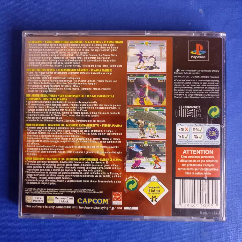 Star Gladiator: I – Final Crusade est un jeu vidéo de combat développé et édité par Capcom en juin 1996 sur système d’arcade ZN-1. C’est le premier jeu de la série Star Gladiator.