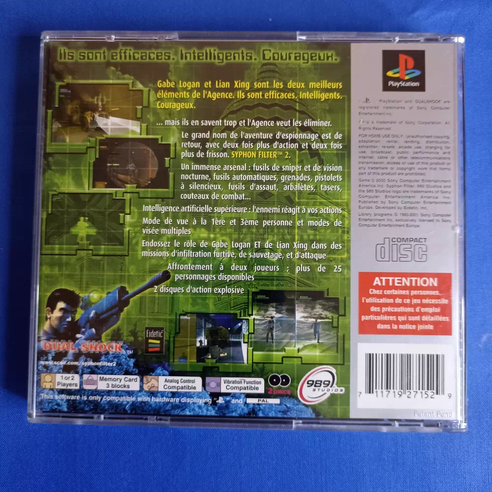 Syphon Filter 2 est un jeu d’action et d’aventure sur Playstation. Incarnez Gabe logan et Lian Xing poursuivis par l’agence pour laquelle ils travaillaient autrefois. Vous avez à votre disposition un arsenal immense composé de fusils de sniper, de fusils automatiques, de grenades, de pistolets silencieux ou non et de beaucoup d’autres armes encore. Le soft est jouable à deux en mode Match à mort.