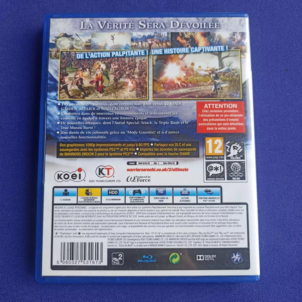 Warriors Orochi 3 Ultimate est un beat’em all de masse sur PlayStation 4. Rassemblant les héros des différentes séries Warriors mais aussi de Ninja Gaiden ou Dead or Alive, cet épisode nous propose de revivre les batailles du passé pour sauver jusqu’à 145 personnages et affronter une terrible hydre géante. Un éditeur de niveaux est également disponible pour créer ses propres histoires.